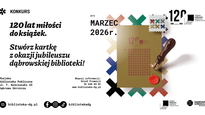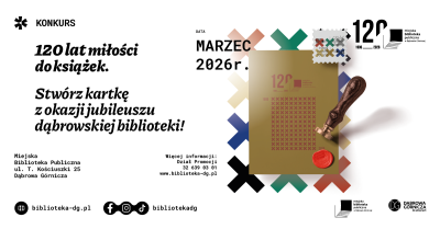 Konkurs kierowany jest do uczniów szkół podstawowych, a jego celem jest zaprojektowanie kartki urodzinowej z okazji jubileuszu dąbrowskiej biblioteki. Zarówno technika, jak i format pracy są dowolne!