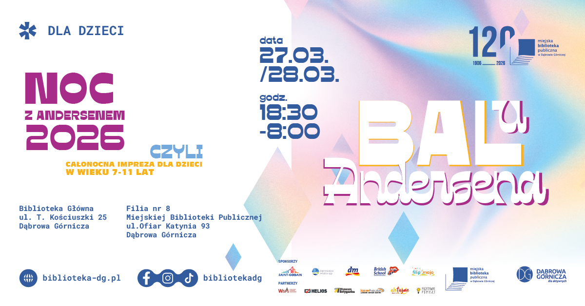 Zgody i regulamin do pobrania na stronie: https://biblioteka-dg.pl/event/noc-z-andersenem-2026/